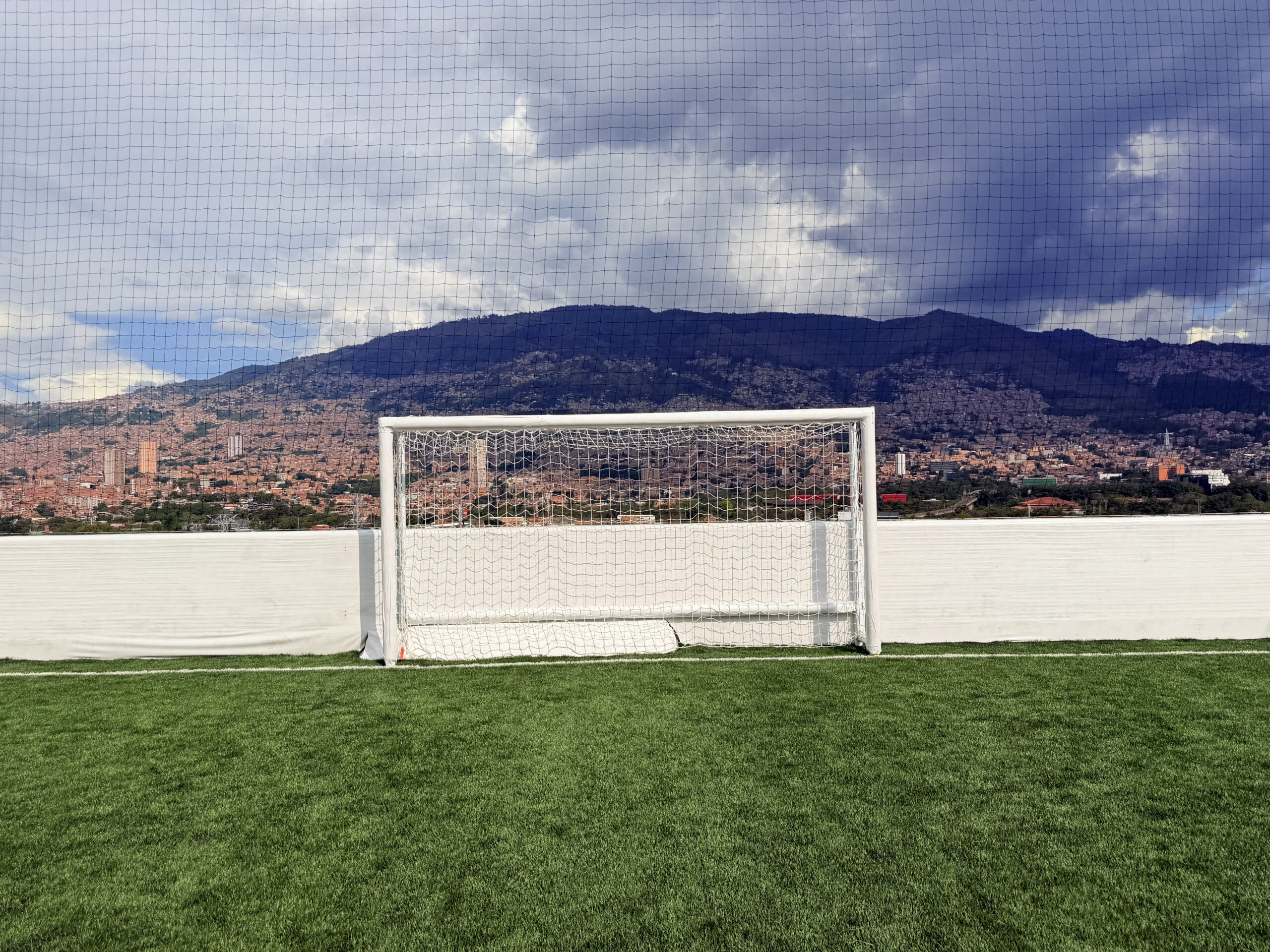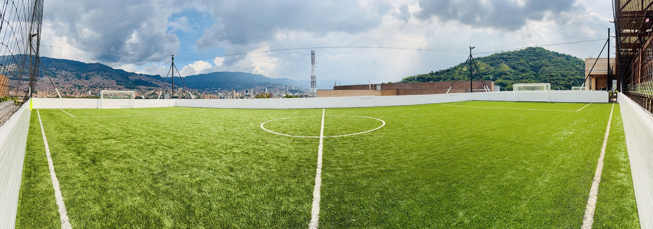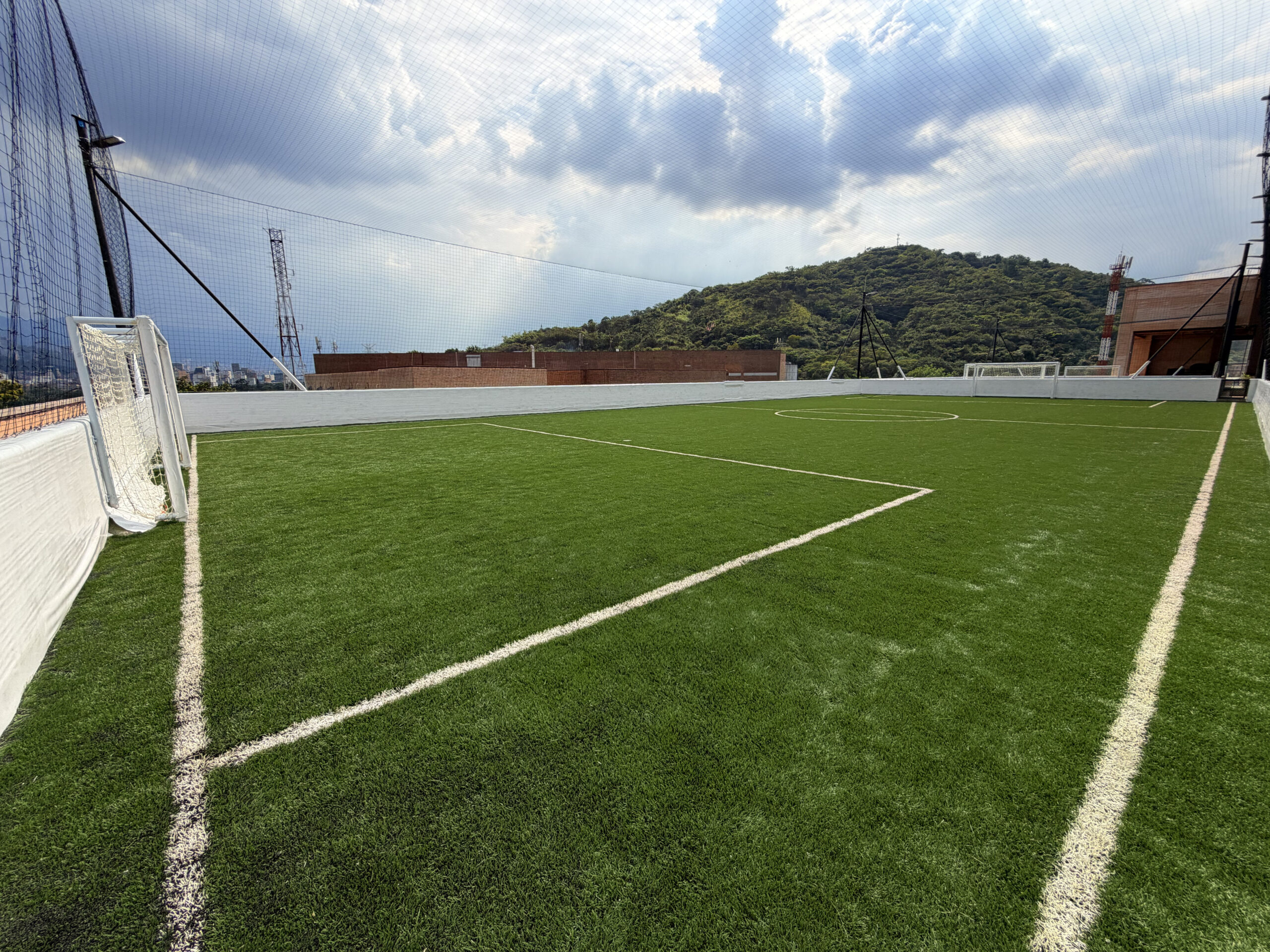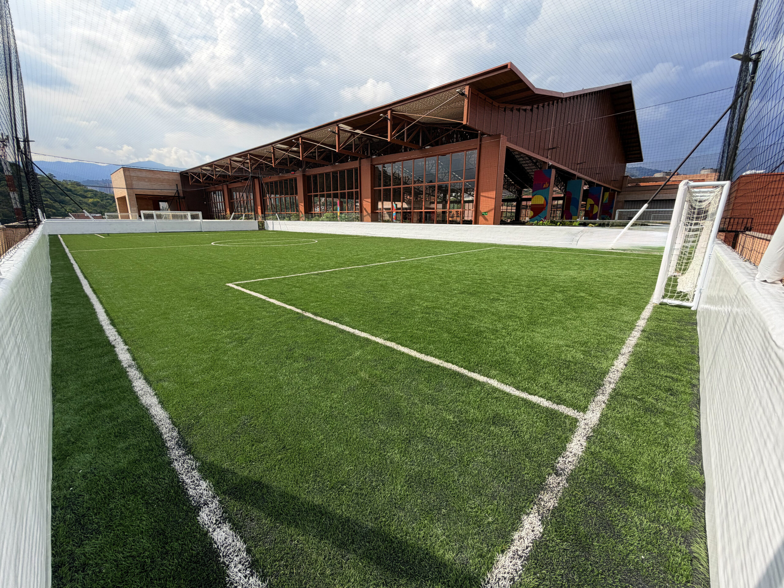 esta cancha cuenta con porterías de 2 metros de alto por 4 metros de ancho.