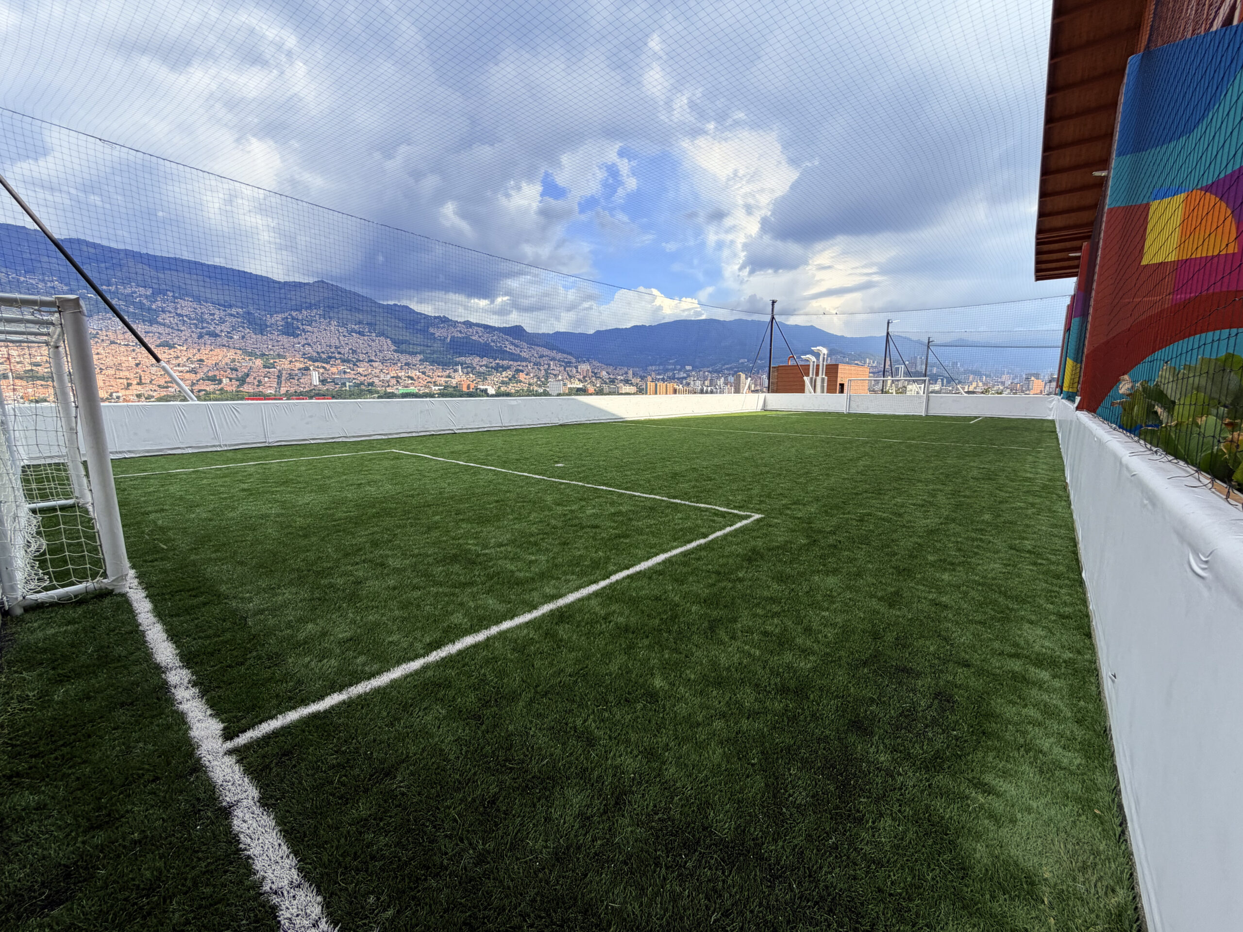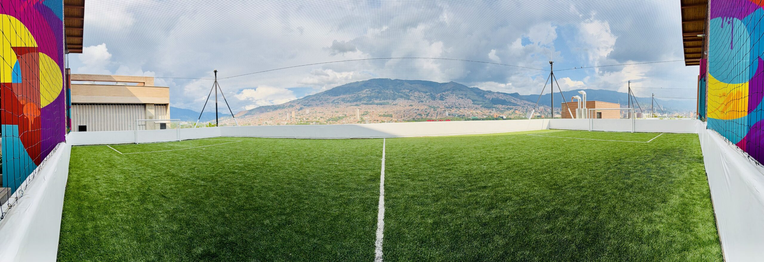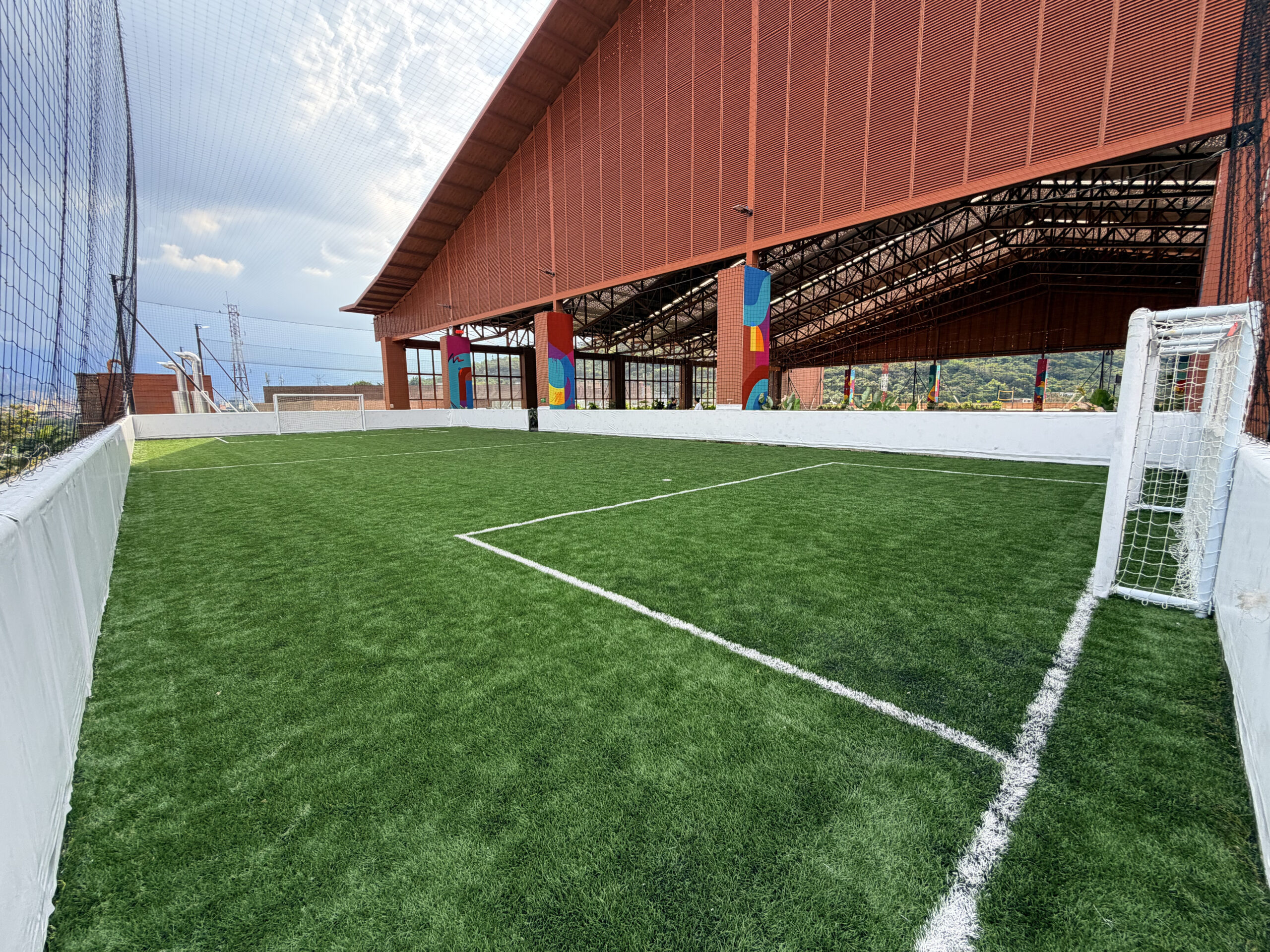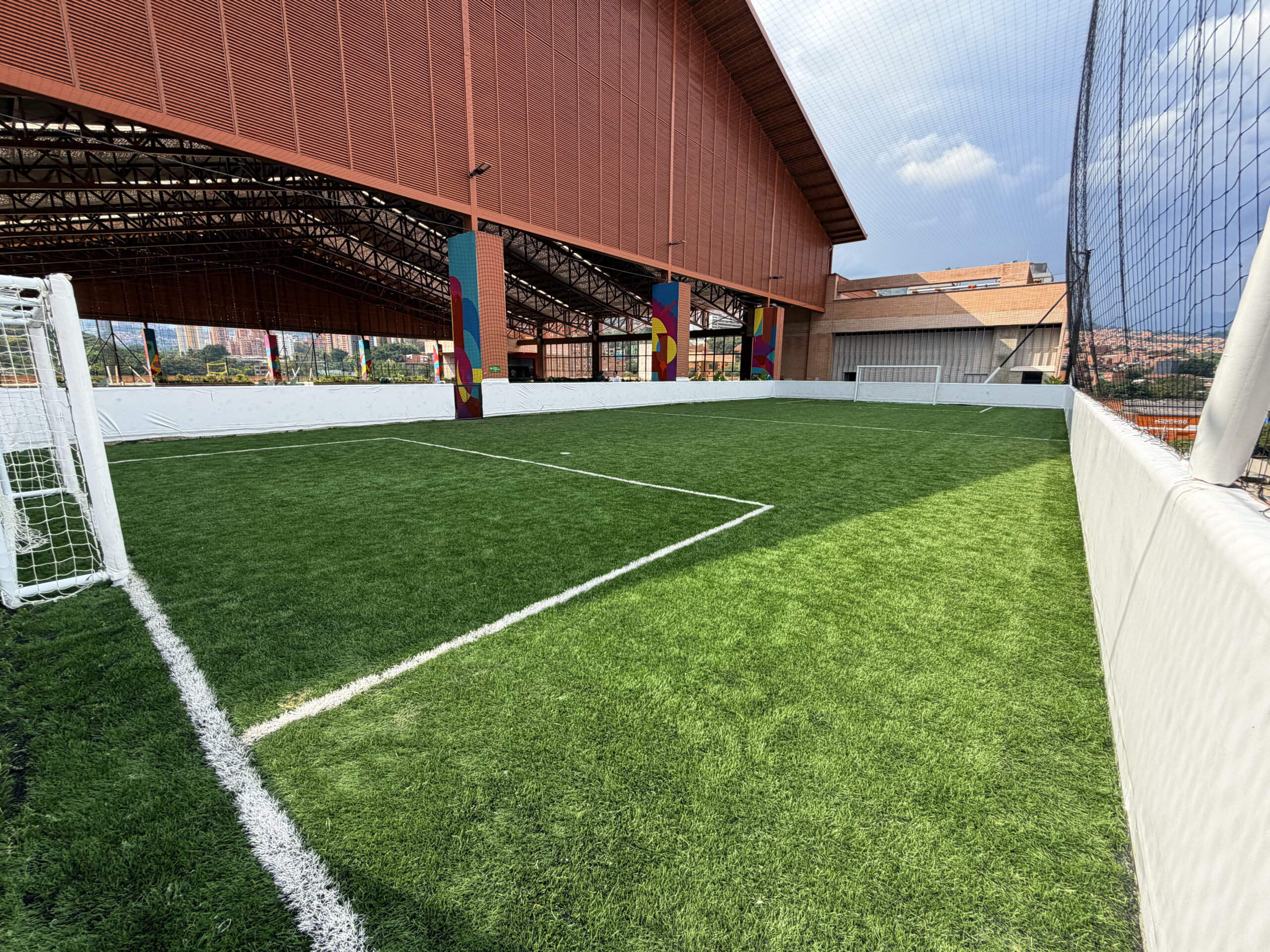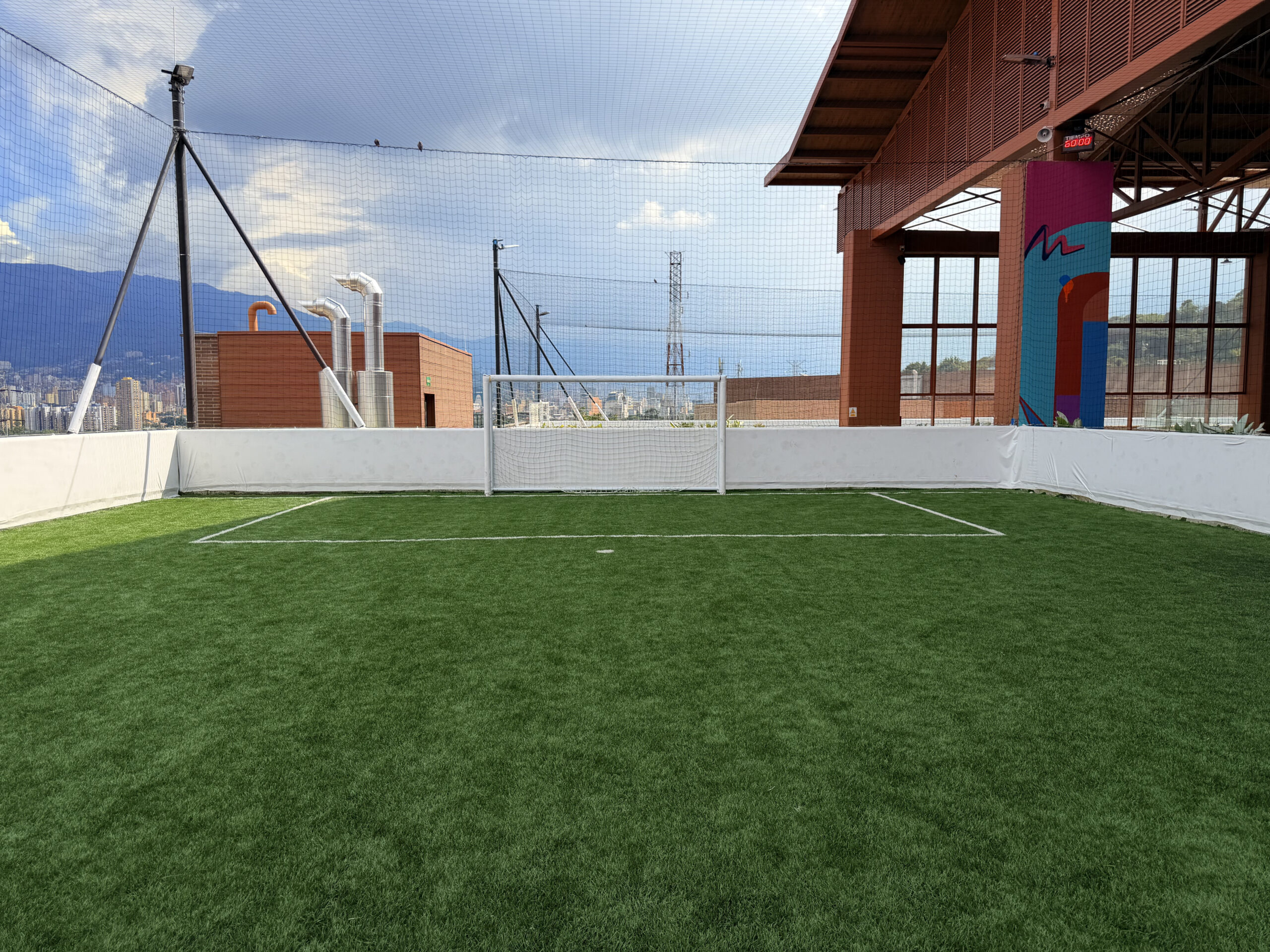 esta cancha cuenta con porterías de 2 metros de alto por 4 metros de ancho.